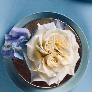 The blue shades of the water and sky are mirrored in the choice of color and floaty elements of the flowers. The wedding bouquet was created with yellow and purple buttercup roses and a bit of blushing pink peonies which scent amazing. Julia Gauld Flowers